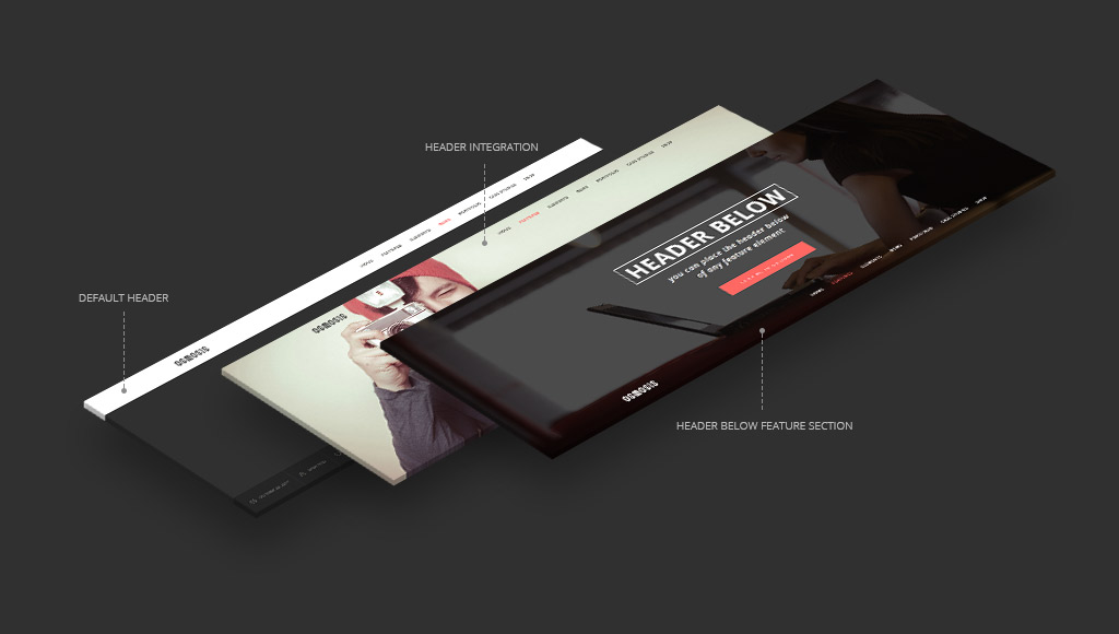 Combine the header elements with the topbar and any of the feature elements at your imagination’s convenience. You have the stick we give you the magic